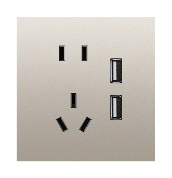 新國標二三插帶2.1A雙USB充電插座