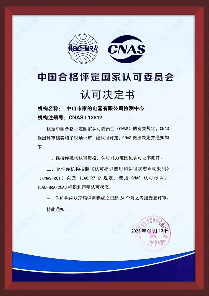 近日,家的公司收到:由中國合格評定國家認可委員會(CNAS)頒發(fā)的《認可決定書》。家的檢測實力再次得到見證!